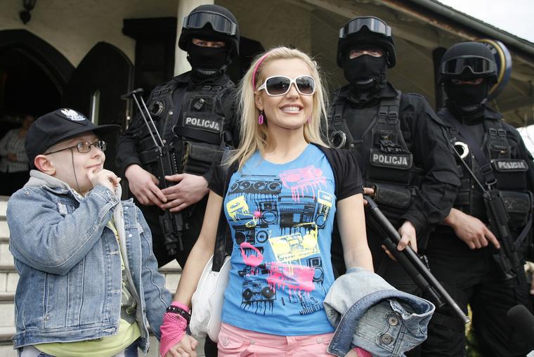 Fotki Dody i antyterrorystów, którzy odwiedzili Villa Rosa w Katowicach Piotrowicach. Fot. Andrzej Grygiel (Onet.pl/ipl)